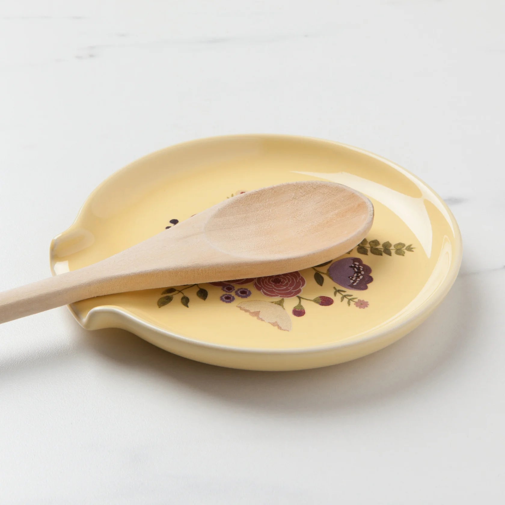This delightful spoon rest is a welcome addition to any kitchen. A motif adds character, while a divot allows spoons to rest comfortably.