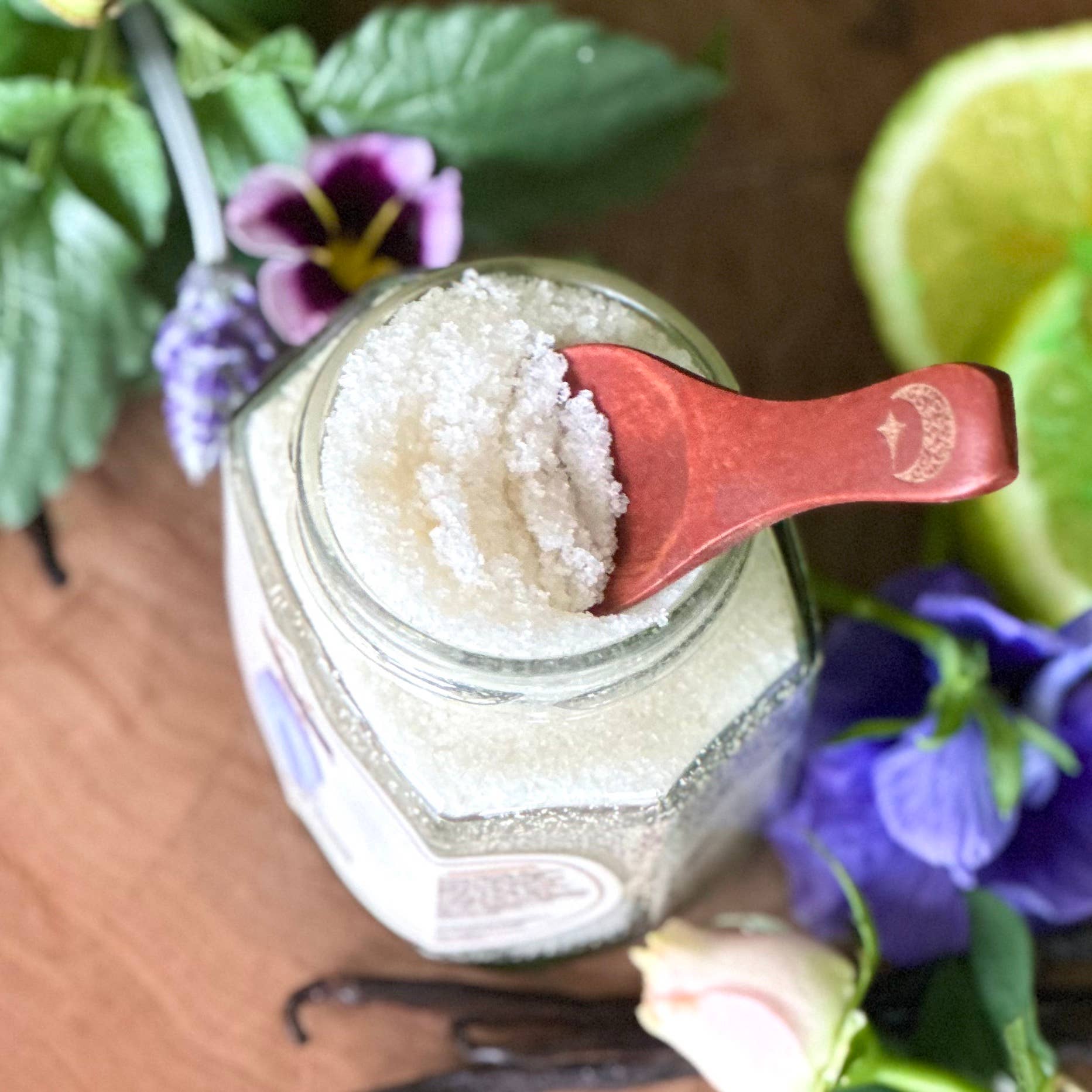 Luna Mineral Body Scrub has the fresh, floral aroma of a moonlit field in spring. Zesty Lime & Bergamot illuminate your senses, with a lingering amber finish that remains on the skin. This high-vibe aroma will have you dancing in the moonlight (clothing optional!) Enriched with Dead Sea Salt, Pumpkin Seed Oil, Vegetable Glycerine, and Vitamin E, Luna Scrub is a moisturizing treat for your skin and senses.