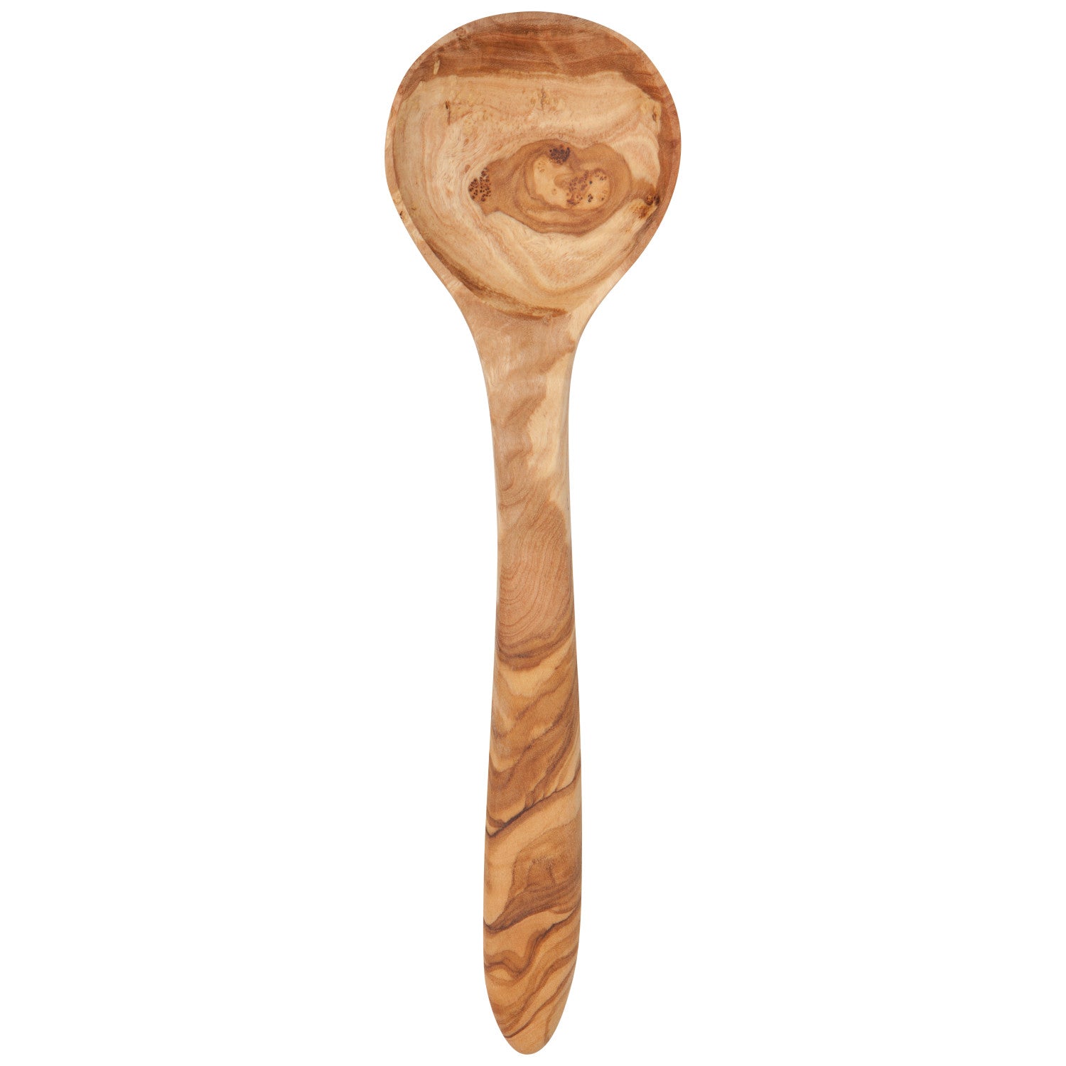 Olive wood radiates the warmth and richness of the a Mediterranean grove. A hardwood, it is sustainable and long-lasting. Our olive wood kitchen utensils and serve ware are made in Tunisia and are responsibly sourced from the non-producing branches of olive orchard trees. Grain patterns and colours vary from piece to piece - each one will be unique. Safe for use on non-stick cookware.