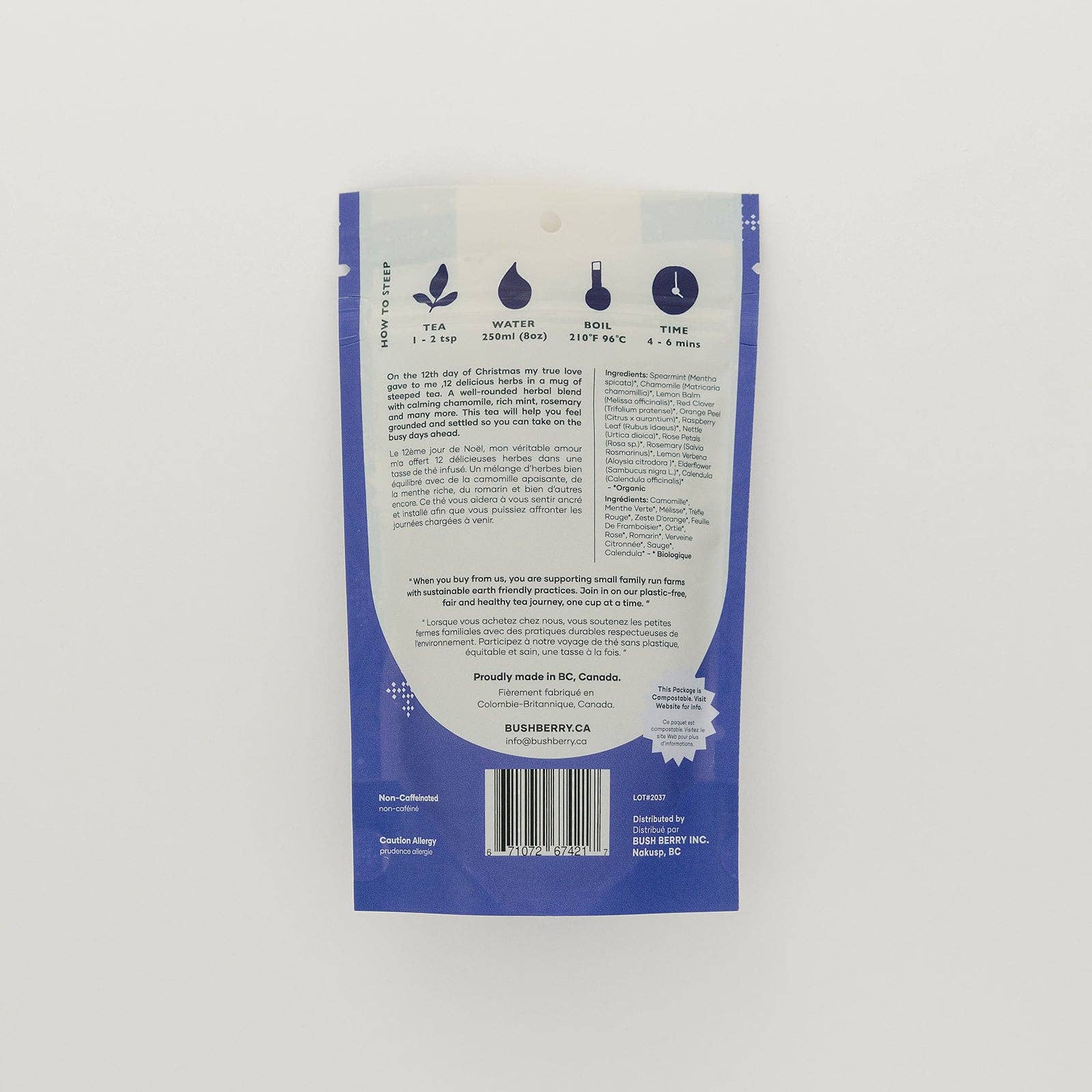 On the 12th day of Christmas my true love gave to me ,12 delicious herbs in a mug of steeped tea. A well-rounded herbal blend with calming Chamomile, rich nettle, common spices like sage and rosemary and many more. This tea will help you feel grounded and settled so you can take on the busy days ahead.
