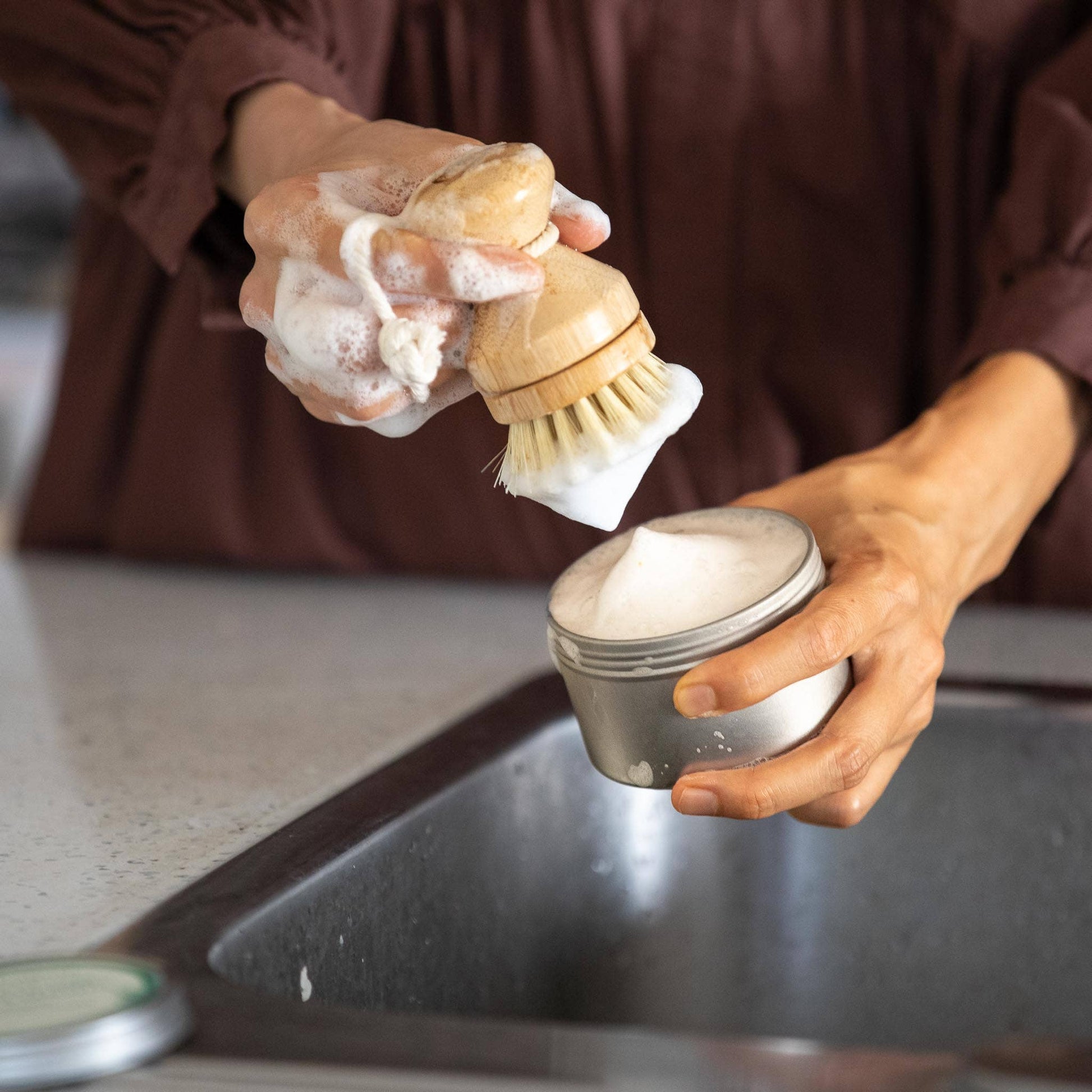 Refill your eco-friendly solid dish soap cake with our biodegradable and plant-based formula, perfect for effective and zero-waste dishwashing. Our additive-free, residue-free soap leaves no waste behind. The strengthened citric acid formula removes grease and leaves your dishes sparkling clean. The perfect sustainable and economical choice for campers, backpackers, picnics, BBQs, and travel. Convenient dishwashing without a soap dish.